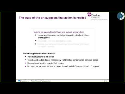 Task-based parallelism is one tool to write such new, highly concurrent software. It phrases programs as sequence of steps including their causal dependencies, but leaves the decision what (aka which task), when and where to execute a task to a task runtime. Task-based codes thus promise to be performance-portable, as a different runtime on a different machine might pick a different schedule.